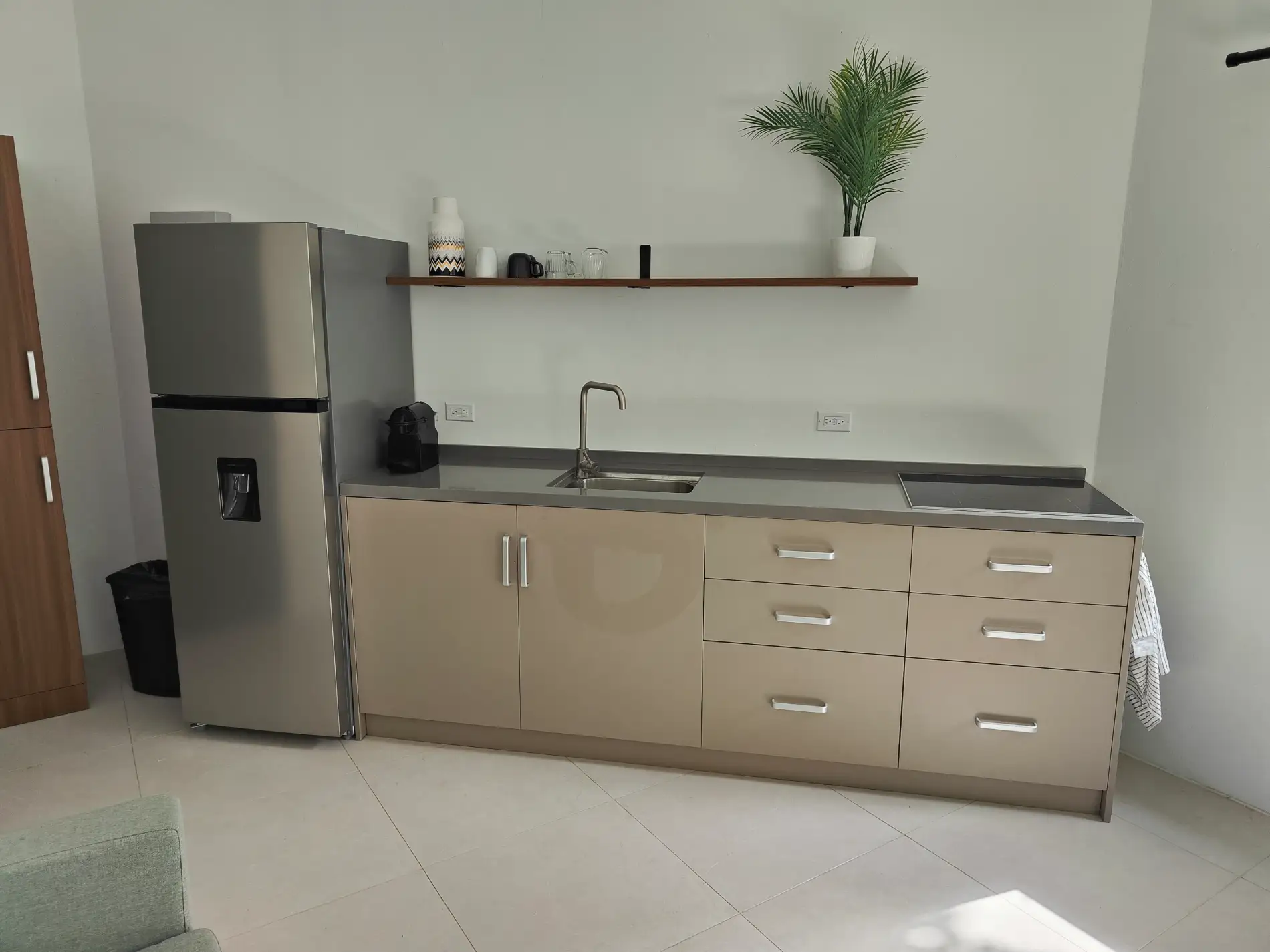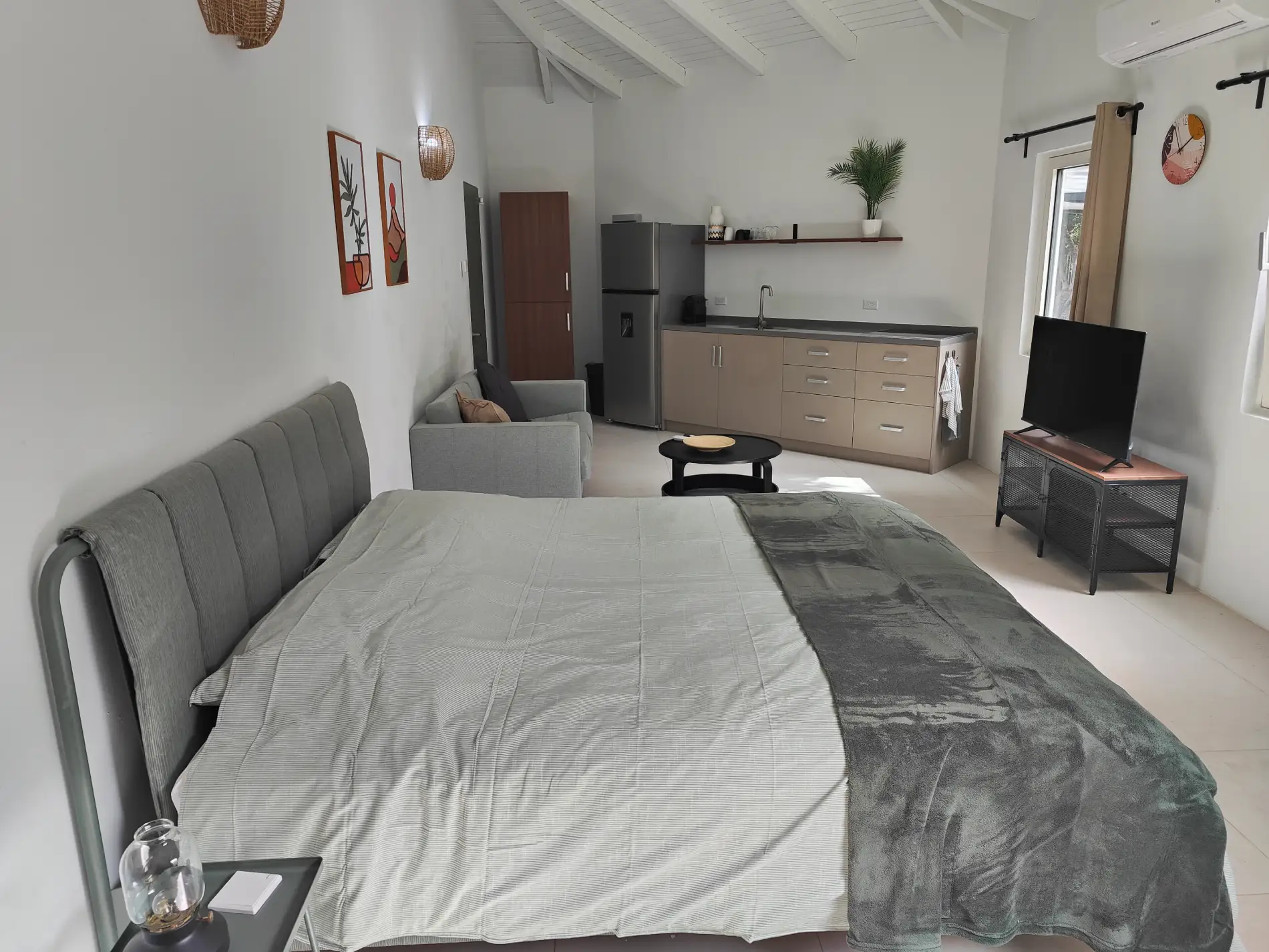 Bright and airy, Studio 55c is designed for relaxation. The studio includes a comfortable bed, practical closet space, and a kitchenette with fridge and stove for self-catering. With its quiet location, refreshing sea breeze, and Zeelandia Beach only a short walk away, it’s a charming choice for a stress-free stay.